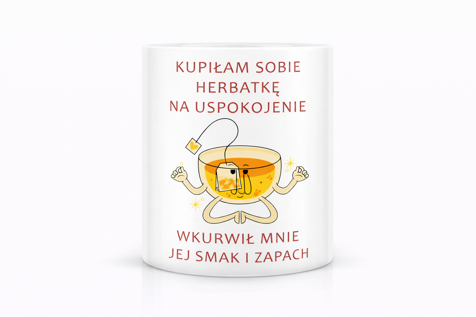 ? Tekst robi całą robotę — kubek natychmiast zapada w pamięć.
