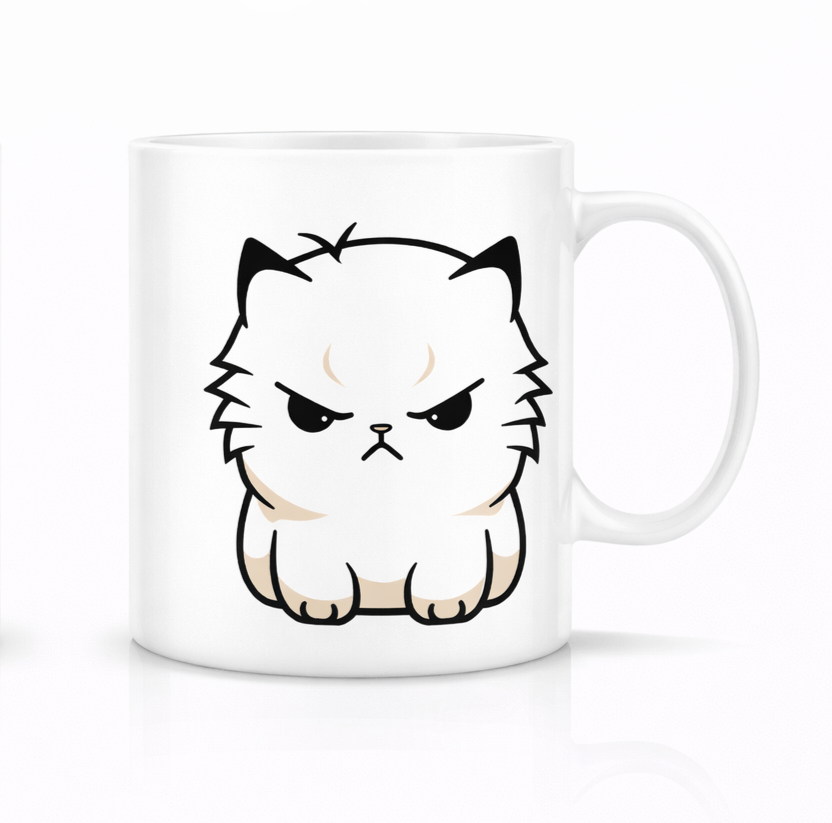 zestawiony z uroczym, ale wyraźnie niezadowolonym kotem tworzy projekt, który trafia w punkt – szczególnie o poranku.