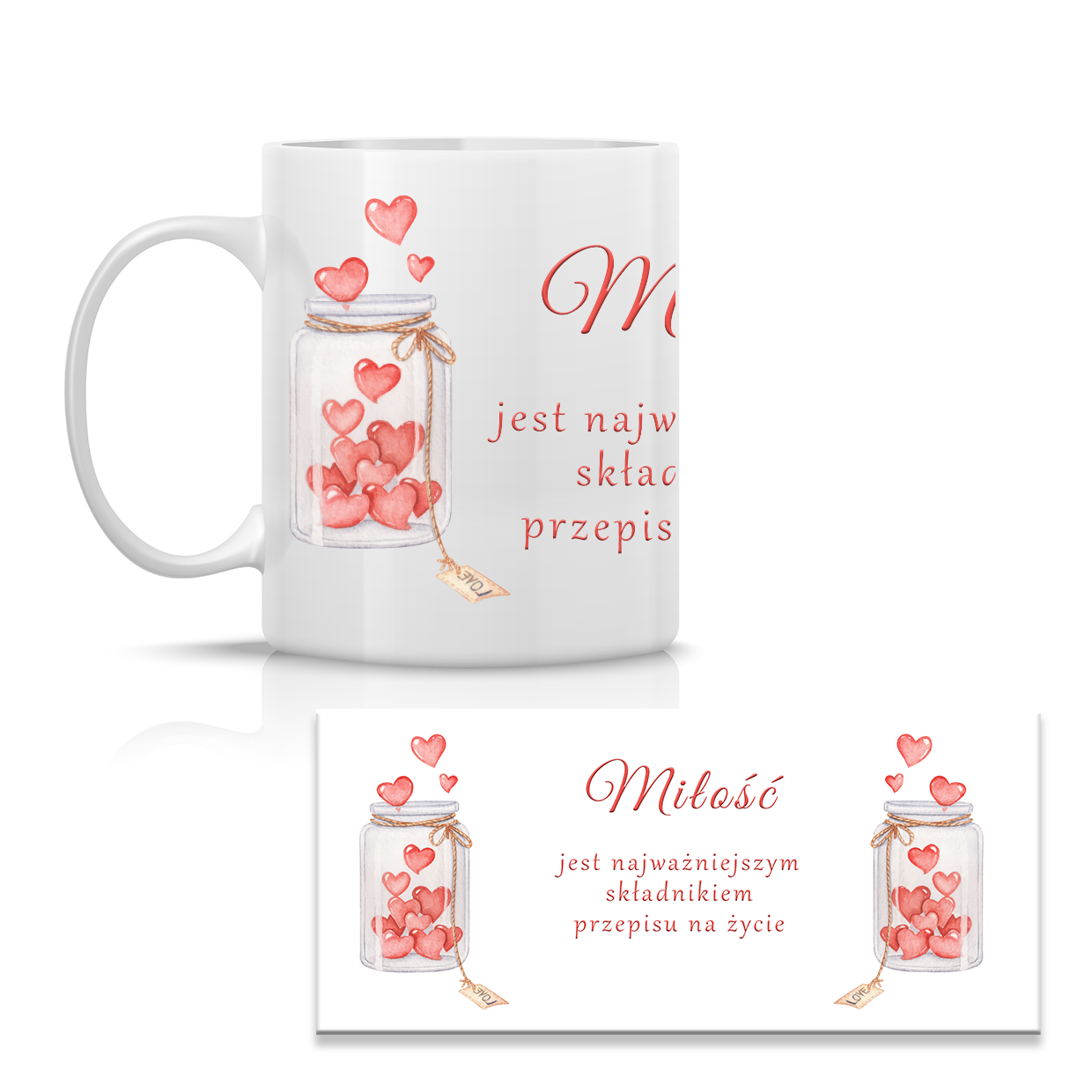 Delikatna ilustracja słoika wypełnionego serduszkami oraz ciepły, romantyczny napis tworzą wyjątkowy prezent – pełen emocji, bliskości i symboliki. Idealny na poranną kawę, herbatę lub chwilę tylko dla siebie.